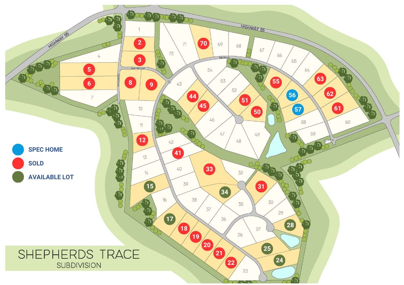 From Charlotte area, take Highway 49 South. After passing Lake Wylie, continue to follow Highway 49 and take a right on Highway 55 East. Follow Highway 55 for 10 miles and Shepherds Trace will be on the left, across from Clover Middle School.